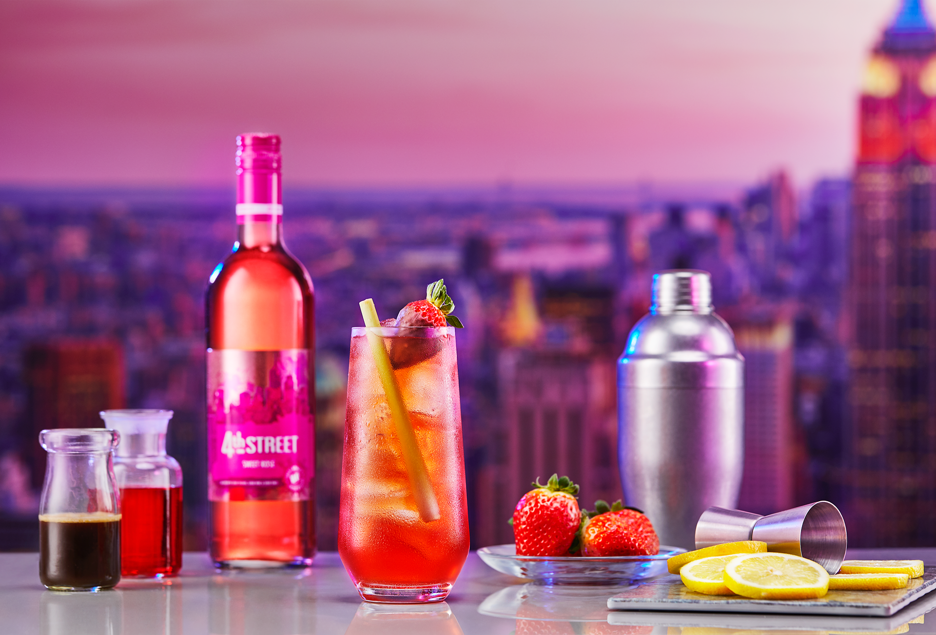 4th STREET wines was updating their look. They had an existing batch of cocktail recipes that needed new names and an image overhaul. We shot quick and cool videos and stills for social that brought the new names to life and hinted at 4th STREET's swaggy urban lifestyle.